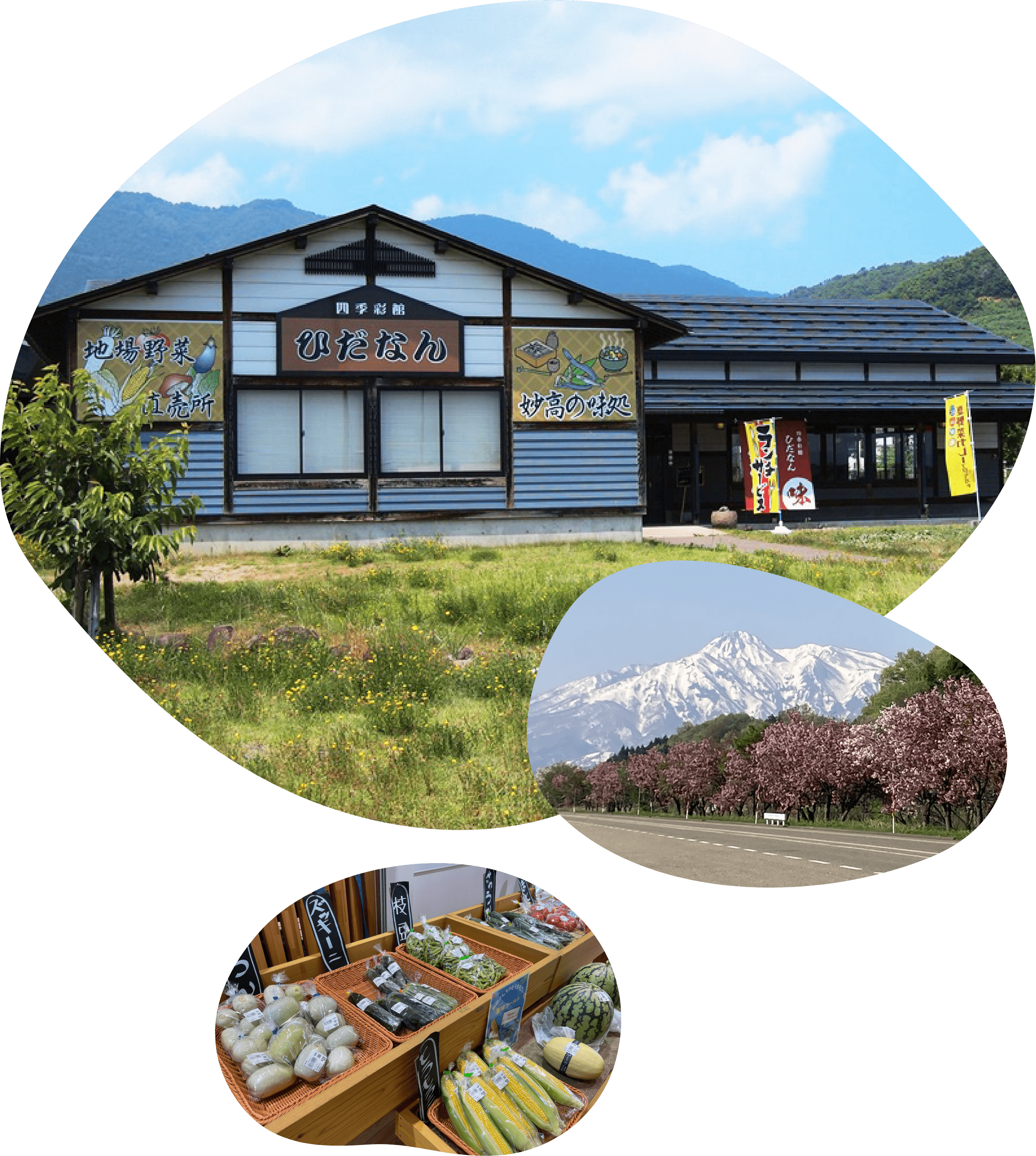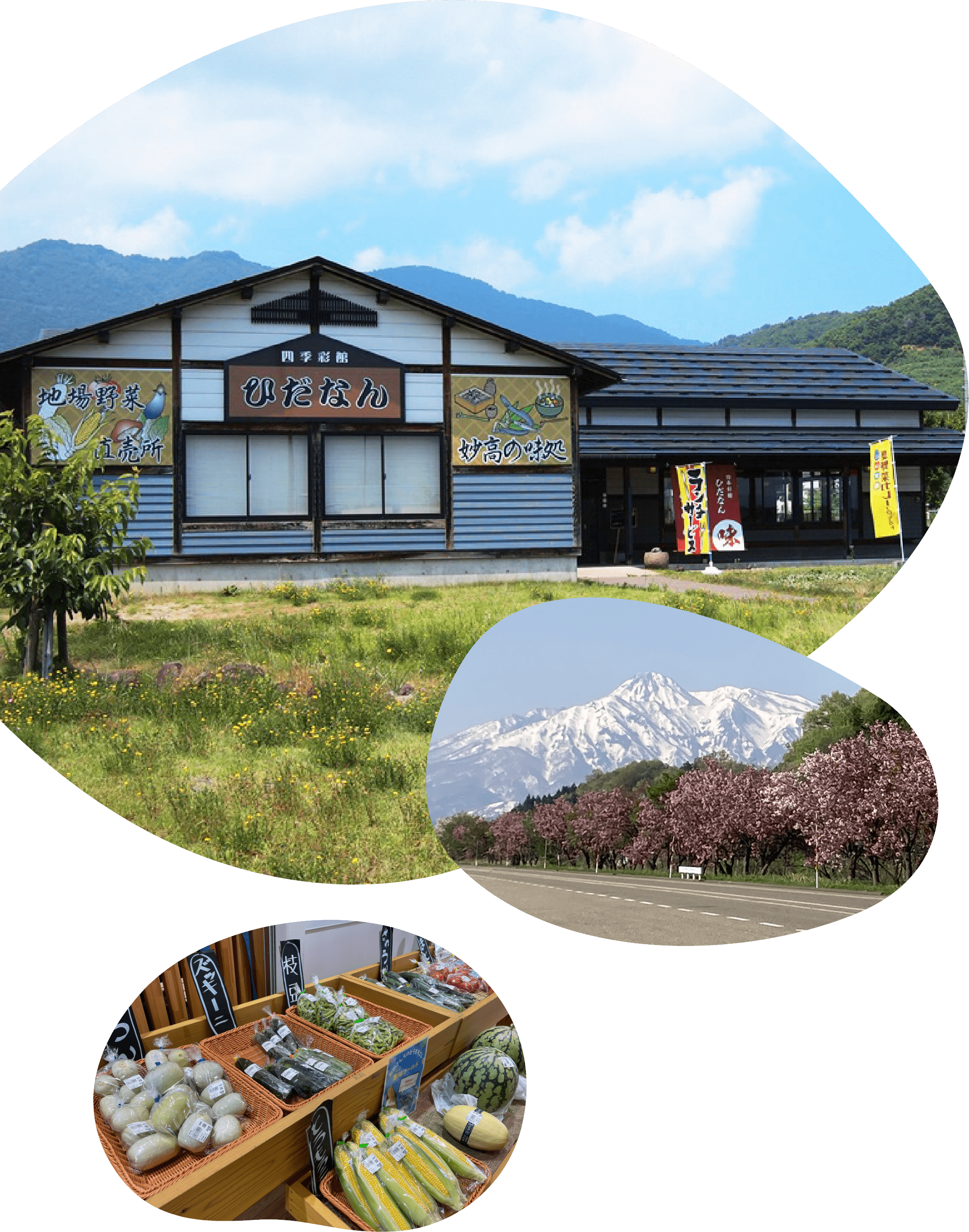 四季彩館ひだなんは、新潟・妙高の自然が育んだ恵みがそろう、道の駅あらい内の直売・飲食施設です。